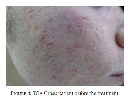 – تکنیک: TCA CROSS در این روش، TCA به صورت موضعی بر روی اسکارهای عمیق مثل ice pick اسکارها اعمال میشود تا بافت آسیبدیده را دقیقاً هدف قرار داده و فرآیند بازسازی را تحریک کند.